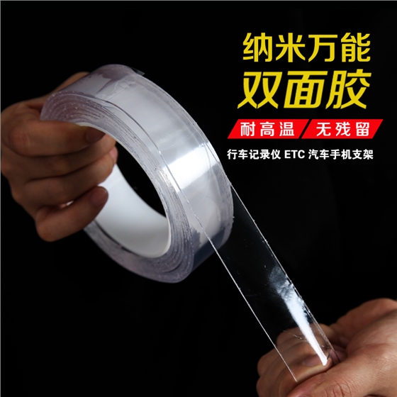 万次纳米无痕双面胶带多少钱一卷?惠州纳米胶带厂家-嘉泰包装!可定制厚度2mm,宽度有20mm,30mm,40mm,50mm;长度1-5米!有透明及红膜两种,具体规格具体报价